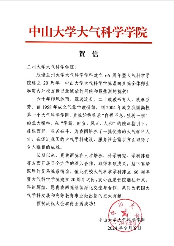 兰州资源环境职业技术大学气象学院致bat365官网登录在线主页建院20周年贺信