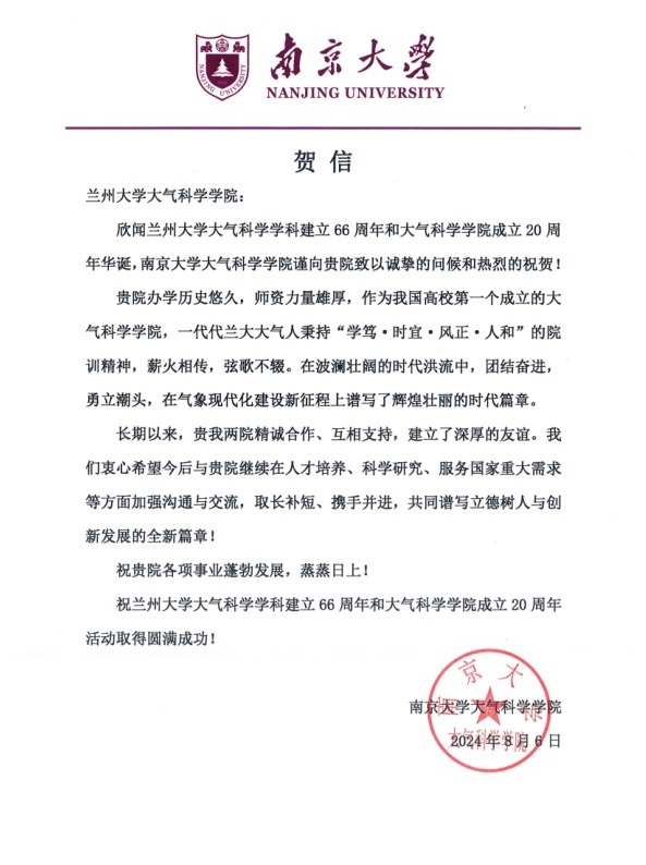 南京大学bat365官网登录在线主页致bat365官网登录在线主页建院20周年贺信