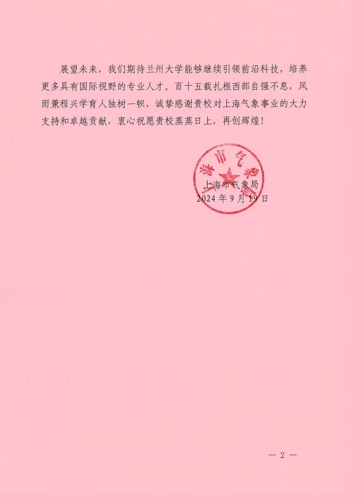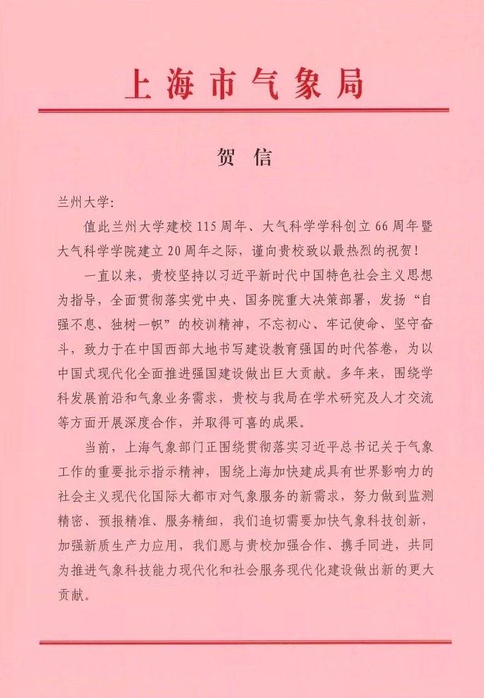 上海市气象局致bat365官网登录在线主页建院20周年贺信