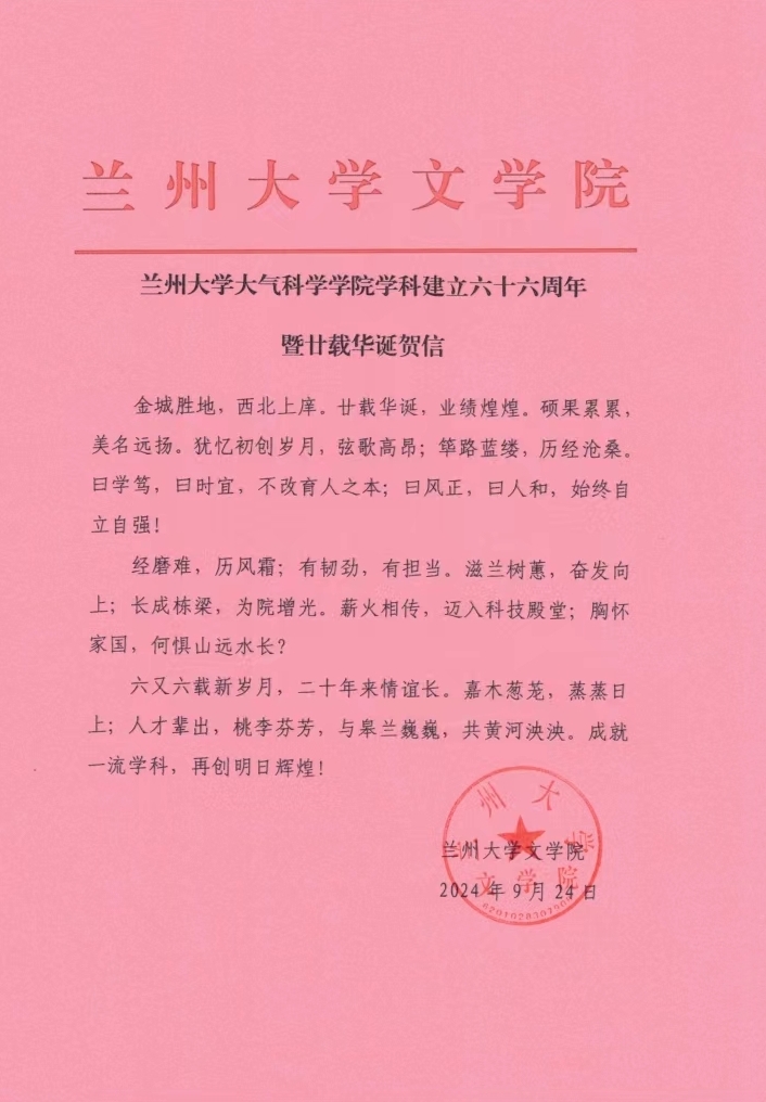 bat365官网登录在线主页文学院致bat365官网登录在线主页建院20周年贺信