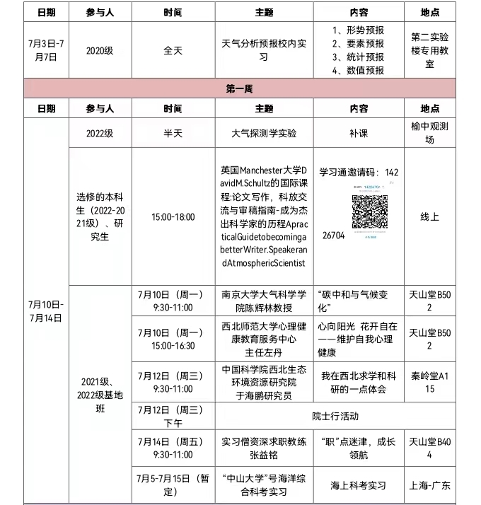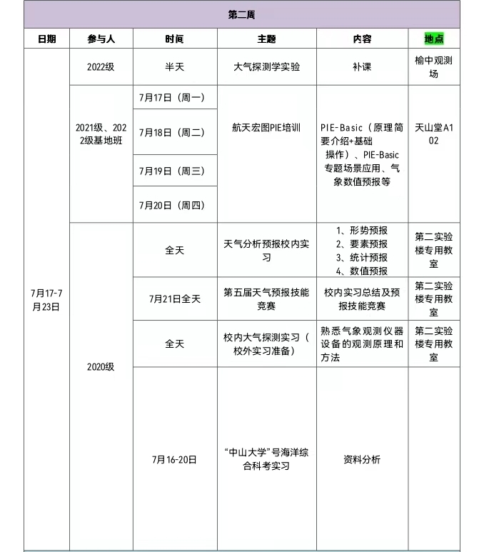 ②大气科学校内综合实习――7月3日至21日。