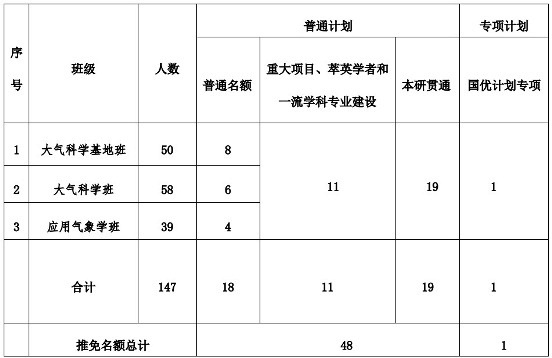 (1)大气科学基地班前三年综测排名前60%(含),专业班综测排名前50%(含)的学生,具有推免申请资格(含“研究生支教团”“国优计划”)。