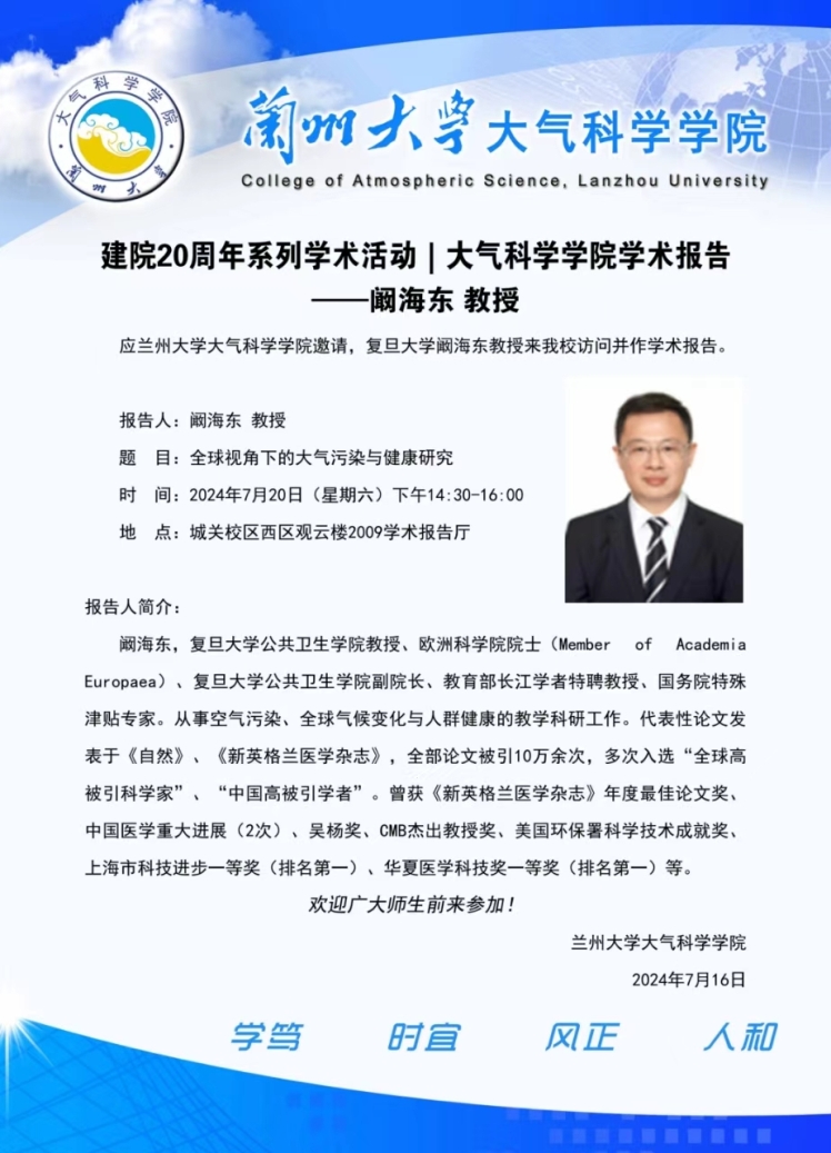【7月20日】建院20周年系列学术活动|bat365官网登录在线主页学术报告——阚海东 教授