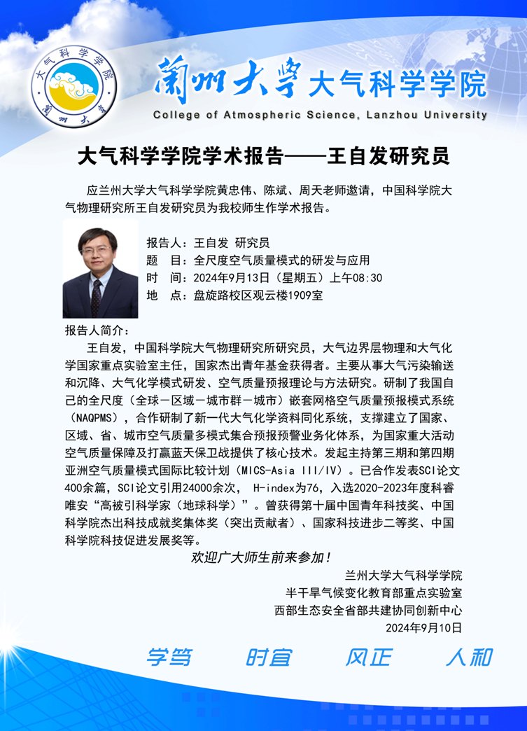 【9月13日】建院20周年系列学术活动|bat365官网登录在线主页学术报告——王自发 研究员