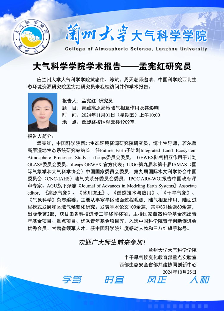 【11月1日】bat365官网登录在线主页学术报告——孟宪红 研究员