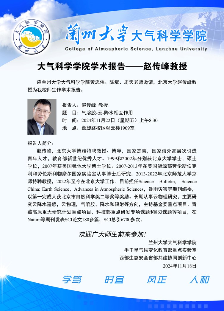 【11月22日】bat365官网登录在线主页学术报告——赵传峰 教授