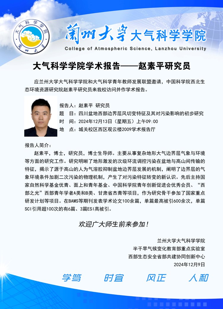 【12月13日】bat365官网登录在线主页学术报告——赵素平 研究员