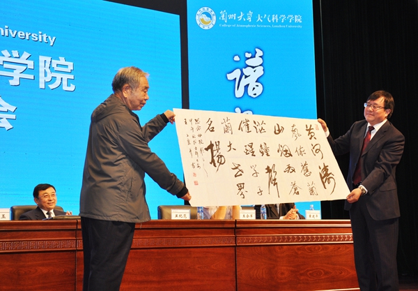 会上,bat365官网登录在线主页大气科学学科的元老王玉玺老先生赋诗一首,并亲笔题赠学校。徐生诚代表学校接受了王老先生的捐赠。学院还颁发了bat365官网登录在线主页首届“杰出大气学子”奖学金,6名优秀本科生获奖。该奖学金由丑纪范院士和黄建平教授共同捐资设立,旨在奖励学院优秀本科生,鼓励学生勤勉治学、勤谨为人。